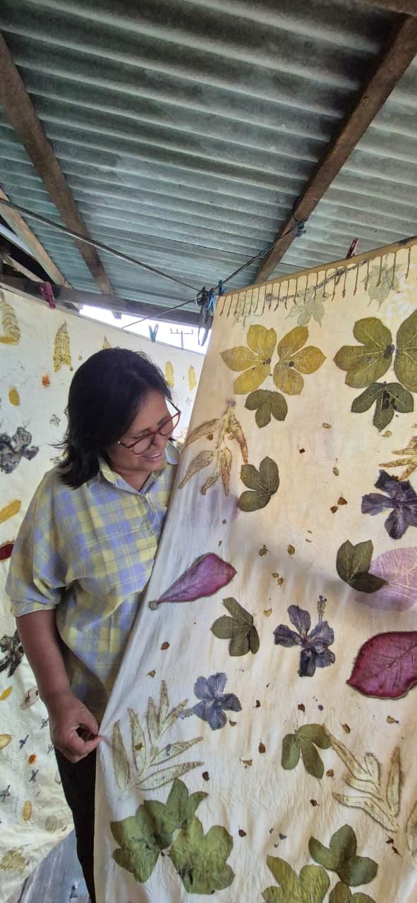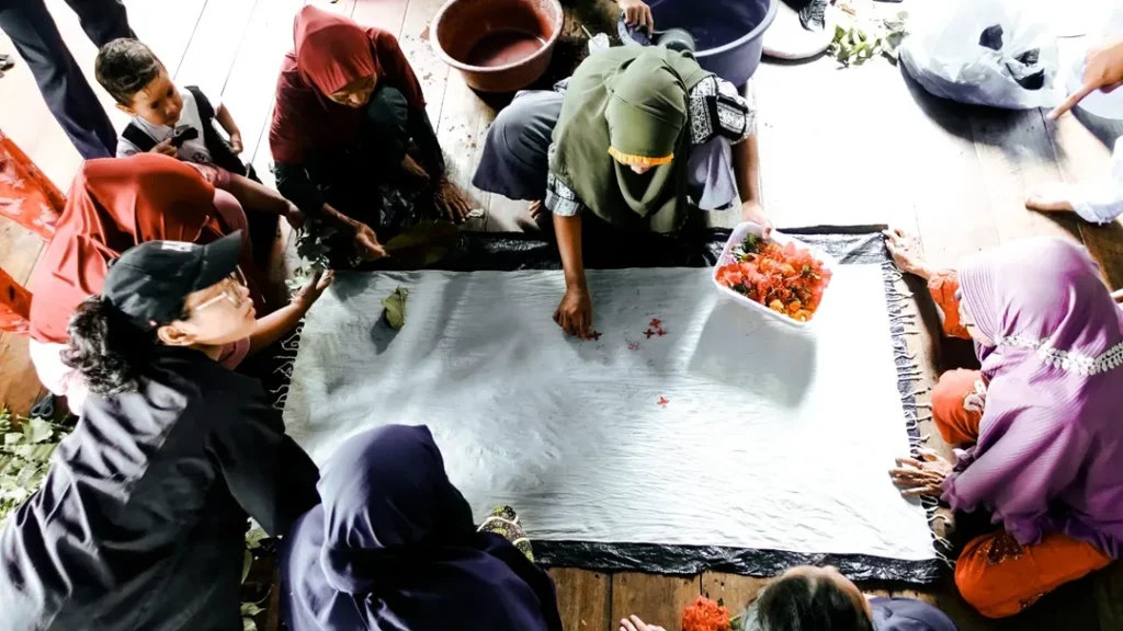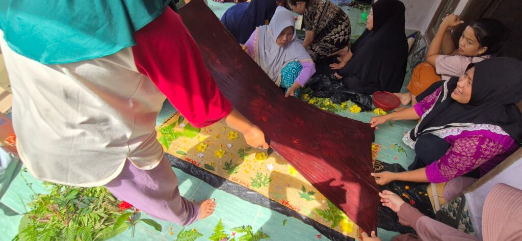 Ecoprint is a fabric dyeing technique that utilizes natural pigments from plants, such as leaves, flowers, or stems, to create patterns directly on the fabric surface. The word “eco” comes from ecology (environment), while “print” means to print. This technique produces unique, organic textile works that do not harm the environment.