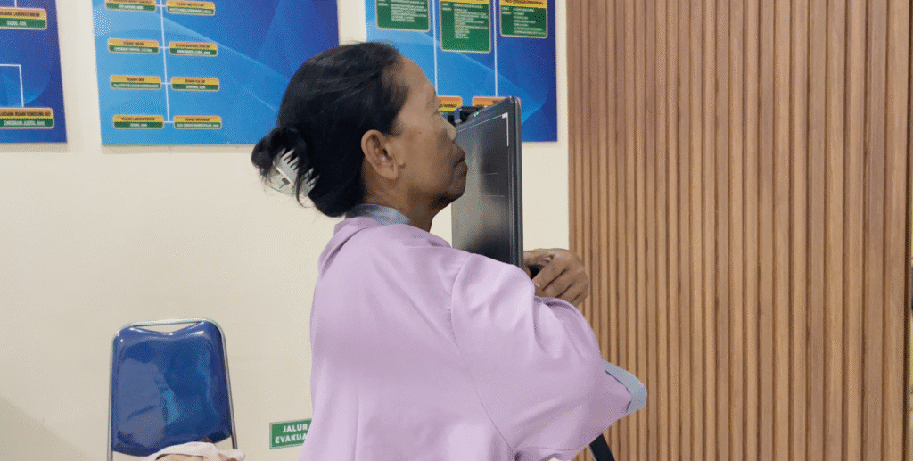 “Kami sangat berterima kasih kepada Puskesmas dan juga Yayasan Srikandi Lestari. Baru kali ini saya ikut rontgen, jadi masih agak takut. Tapi berhubung gratis dan diantar juga, jadi saya ikut” ujar Susilawati, warga Desa Bulu Cina.